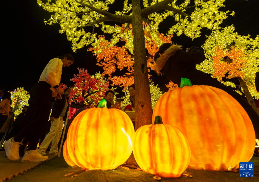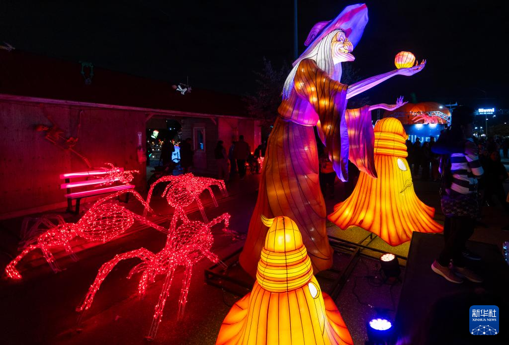 10月18日,人们在加拿大安大略省米西索加举办的灯展上参观。