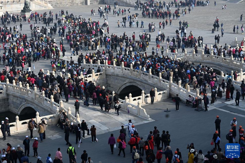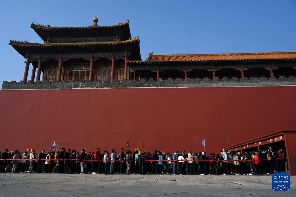 10月24日上午,观众在午门广场排队等候进入故宫。
