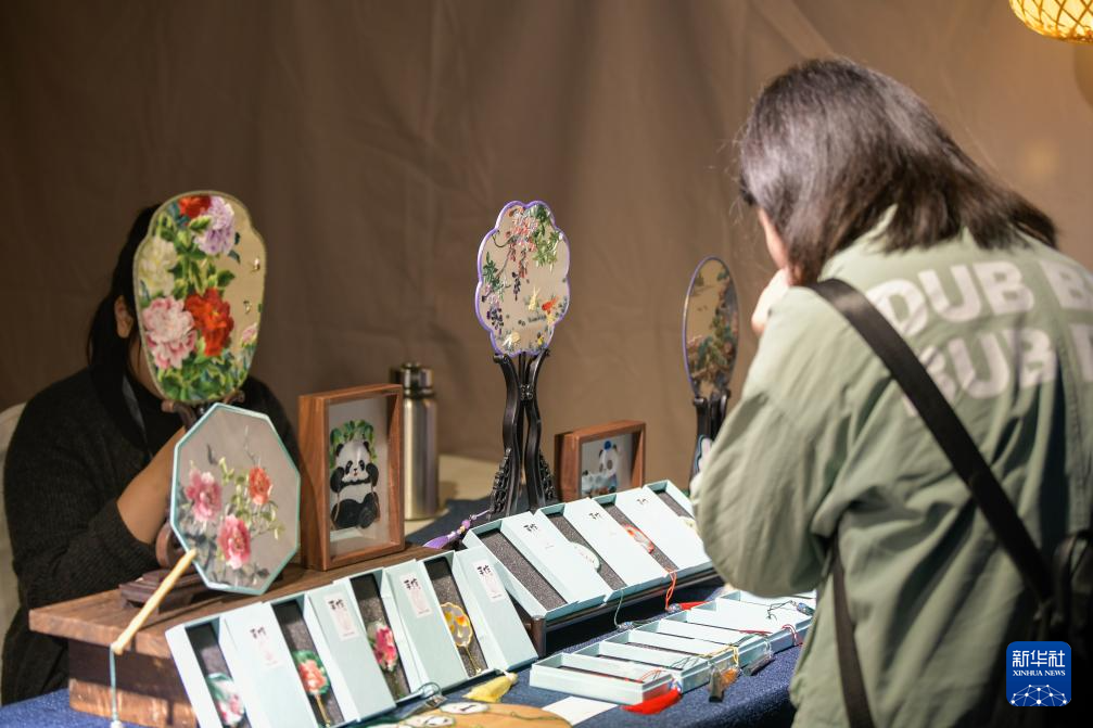 11月3日,市民在“掇珍集”上选购蜀绣工艺品。