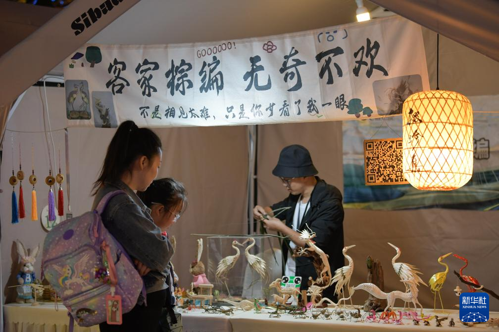 11月3日,市民在“掇珍集”上观看棕编作品。