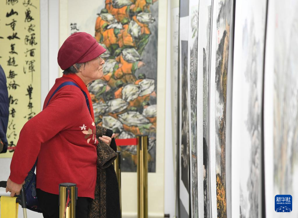 11月12日,观众参观第十一届“大美平谷·水墨周庄”书画展。