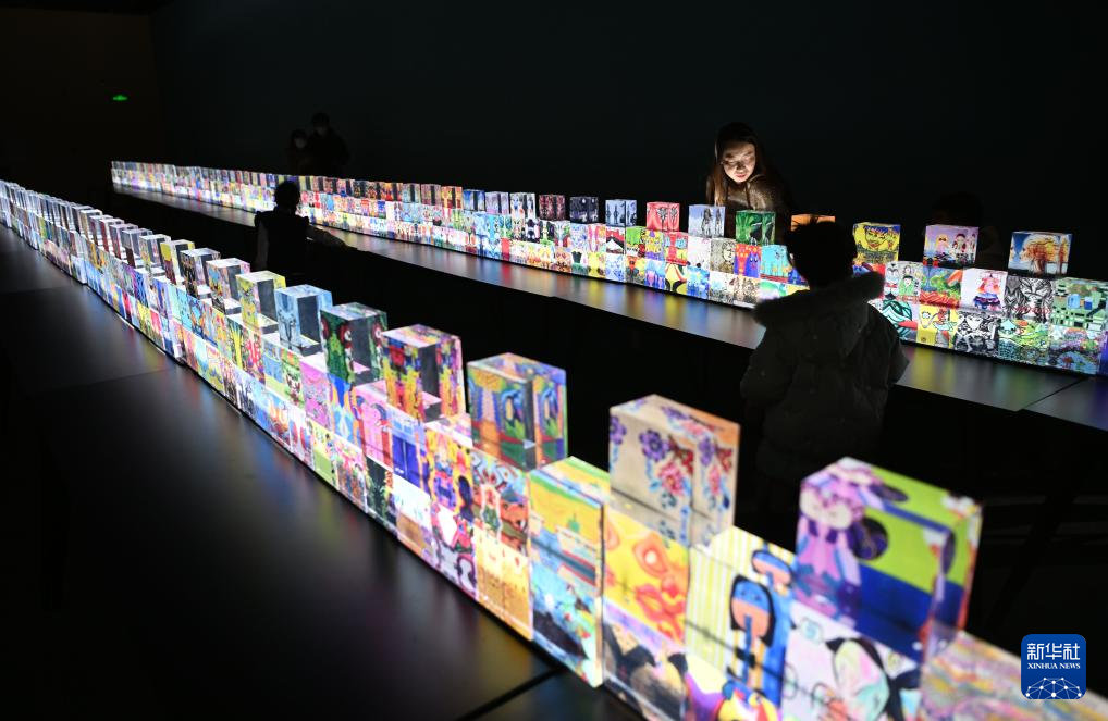 11月25日,参观者在银川当代美术馆观看“一颗种子的旅行”儿童艺术展。