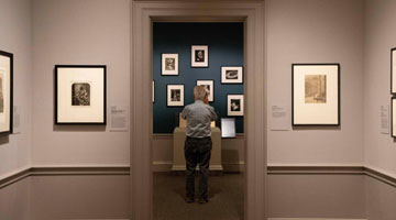 12月9日,媒体人员在参观达·芬奇的学生波塔费奥的画作《年轻戴帽男子》(左)和《女子半身像及眼睛》(右)。