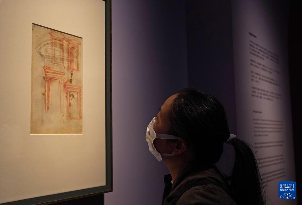 12月9日,媒体人员在参观米开朗基罗的画作。