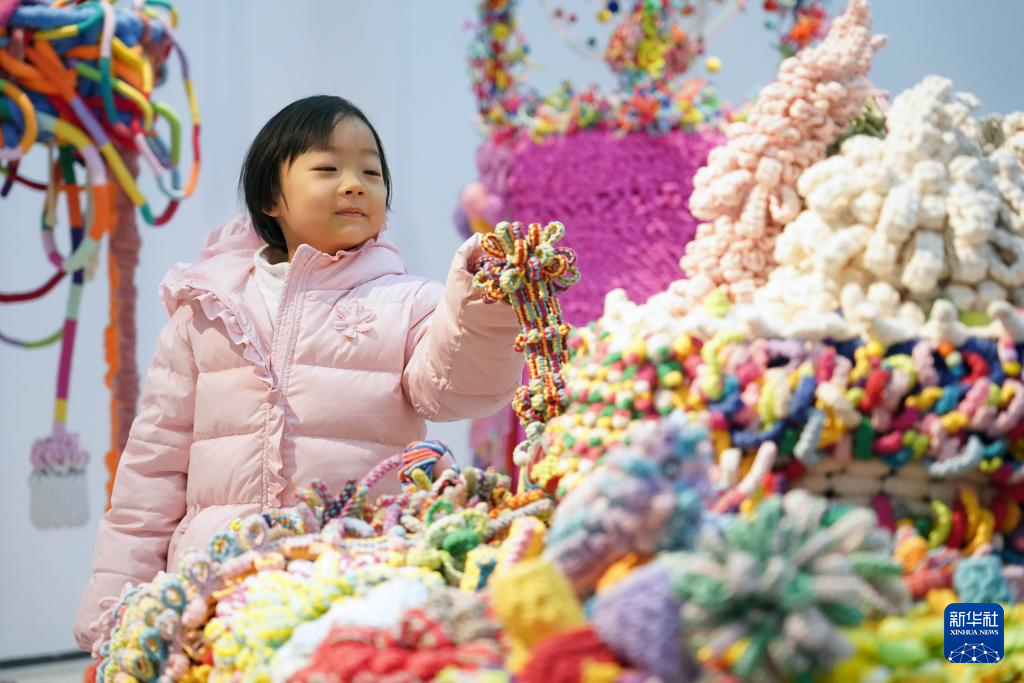 12月14日,在北京时代美术馆,小朋友在参观展览。