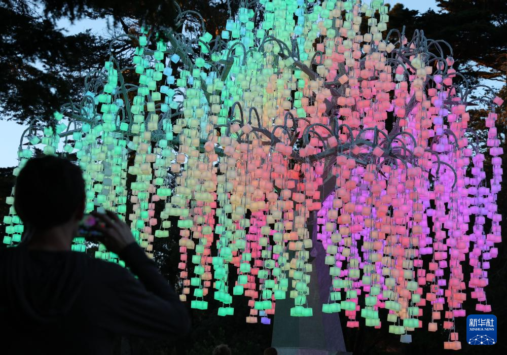 12月23日,人们在美国旧金山的金门公园观赏灯饰。