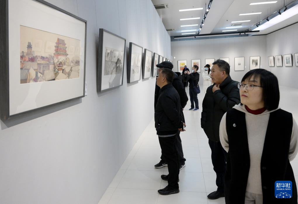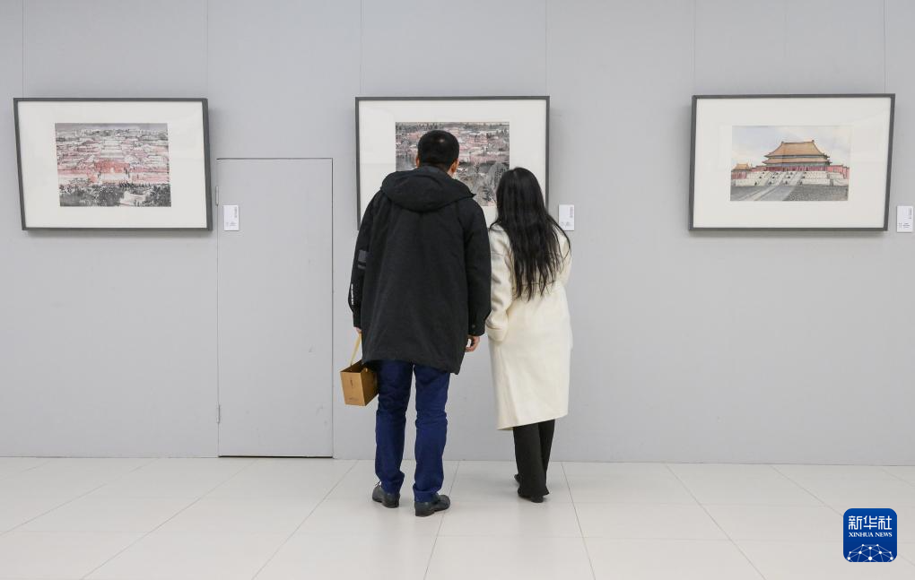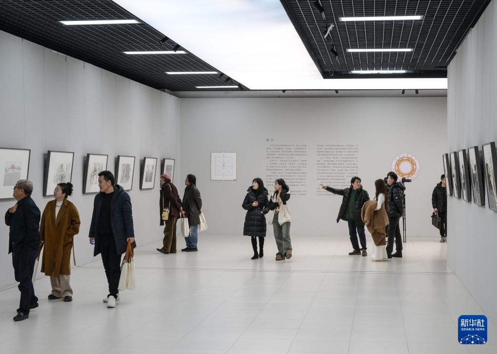 12月28日,观众在北京中国国家画院展厅参观画展。