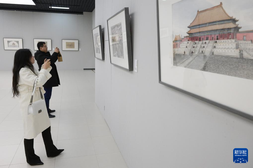 当日,“中国画 画文物——2023北京中轴线主题写生作品展”在北京中国国家画院开展。