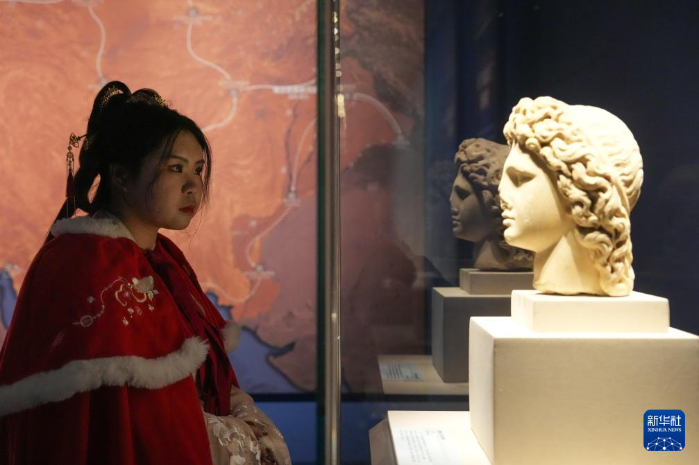 1月3日,一名观众在湖南博物院参观“神话国度 璀璨爱琴海——古希腊文明史诗”展。