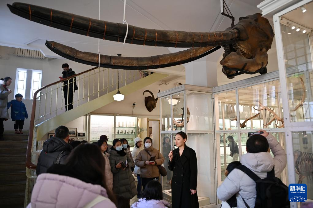 1月27日,讲解员在北疆博物院给游客介绍展陈情况。