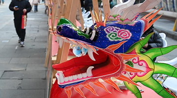 1月29日,工作人员将竖披发青铜人像移入展柜。