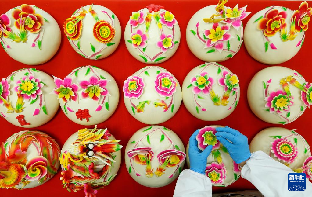 春节临近,山东省青岛市即墨区的民间艺人忙着赶制花馍等特色面食,通过“线上+线下”的销售模式供应各地年节市场。花馍是当地的特色面食,造型多样。