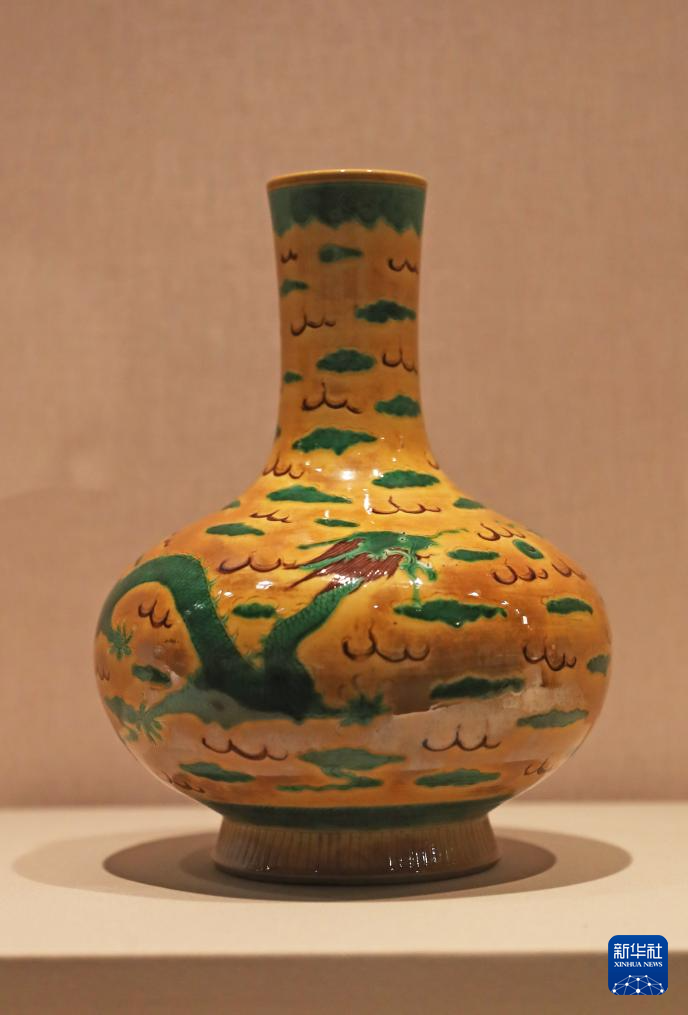 2月2日在辽宁省博物馆拍摄的黄地素三彩云龙纹尊。