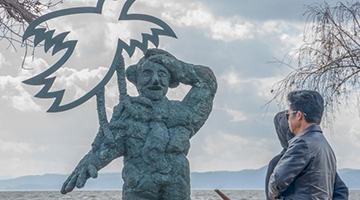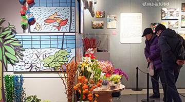 2月6日,小朋友在驻足观看一个创意座椅展品。