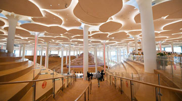 在北京城市副中心,北京艺术中心、北京城市图书馆、北京大运河博物馆三大文化建筑矗立在大运河畔,寓意“文化粮仓”“森林书苑”“运河之舟”。