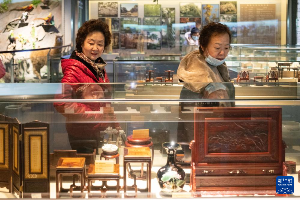 3月21日,游客在中国(哈尔滨)森林博物馆内参观。