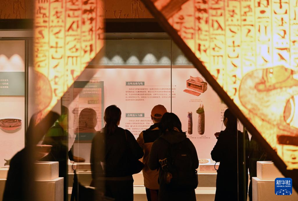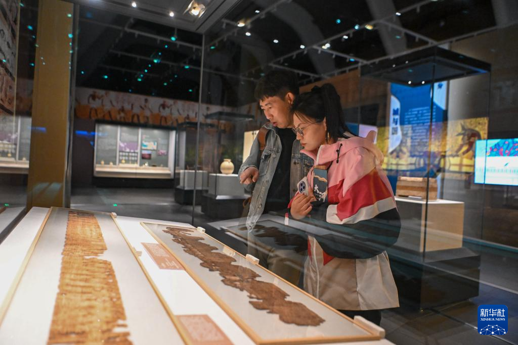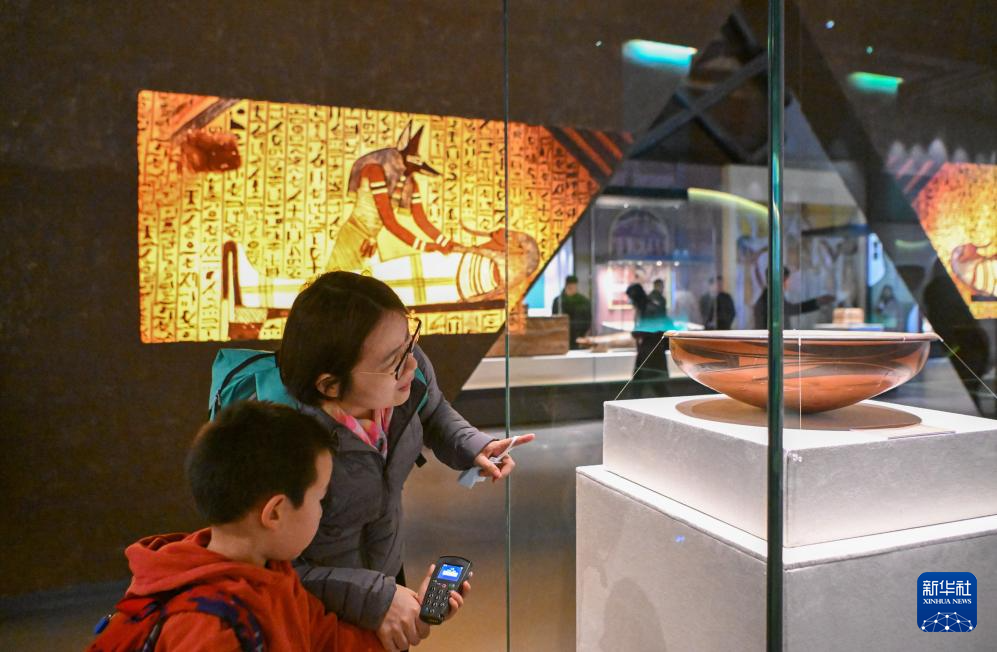 3月22日,参观者在国家海洋博物馆观看“大河文明”展。