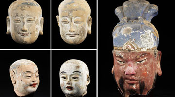 马赛在工作室内手拿莲花冠查看作品细节(3月19日摄)。