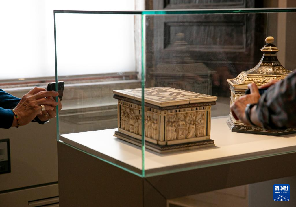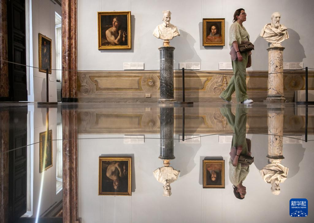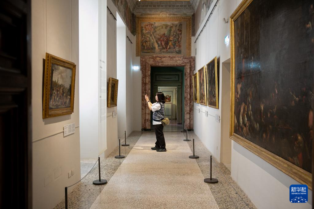3月29日,观众在意大利罗马的巴尔贝里尼宫拍摄展品。