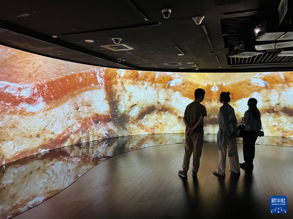 4月2日,观众在沉浸式剧场欣赏肉形石。新华社记者 齐菲 摄