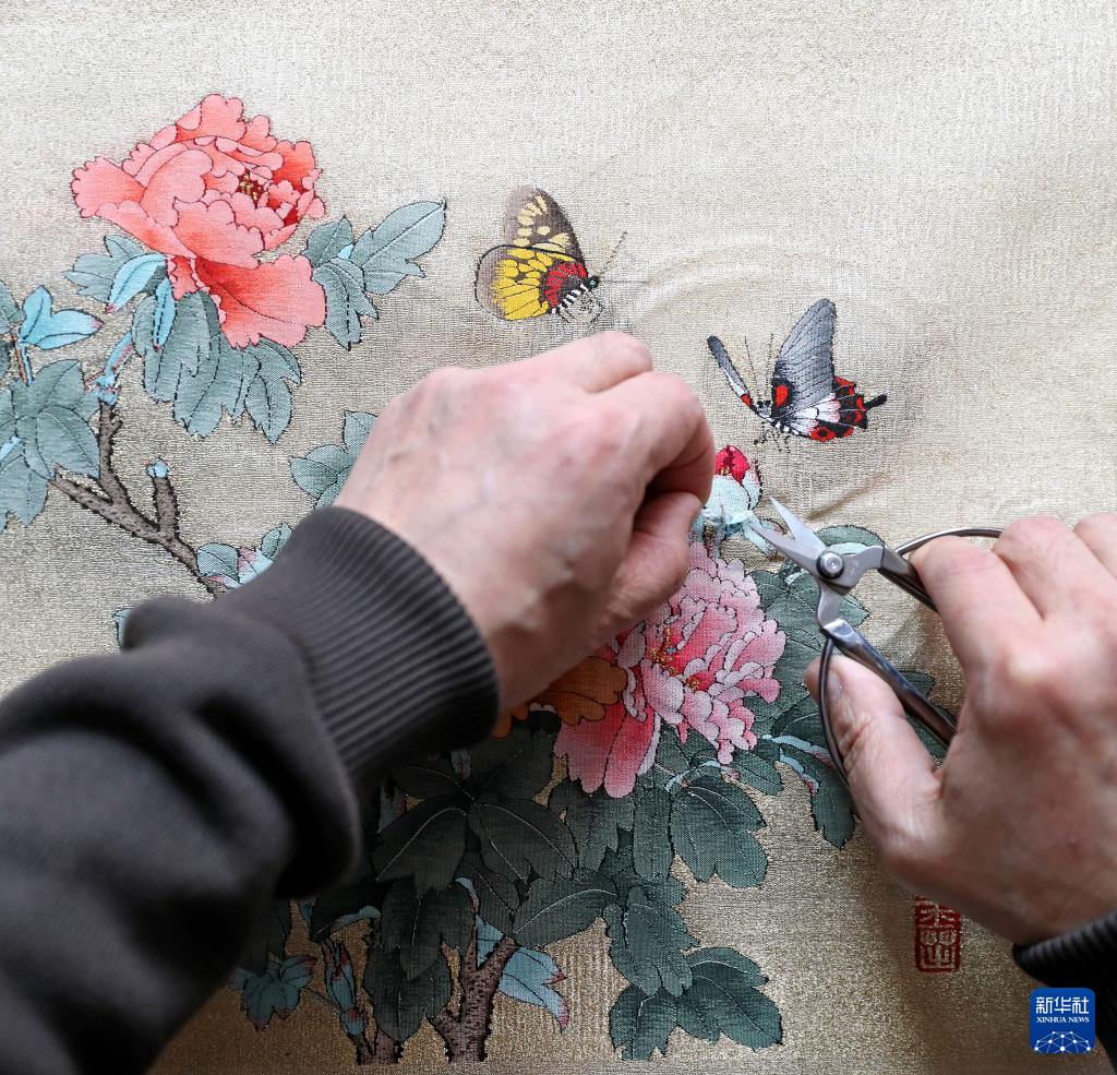 辽宁省营口市55岁的申涛是营口非遗项目申氏缂丝的传承人,师从国家级非遗缂丝传承人王金山。20多年来申涛一直从事古代缂丝文物复制、缂丝新产品开发和缂丝技艺研究。他以独特的匠心将古老的技法与现代艺术结合,创造出符合现代审美的缂丝作品。