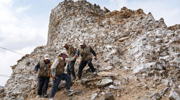 4月9日,申涛在位于营口市的家中指导女儿申圣丹进行缂丝创作。