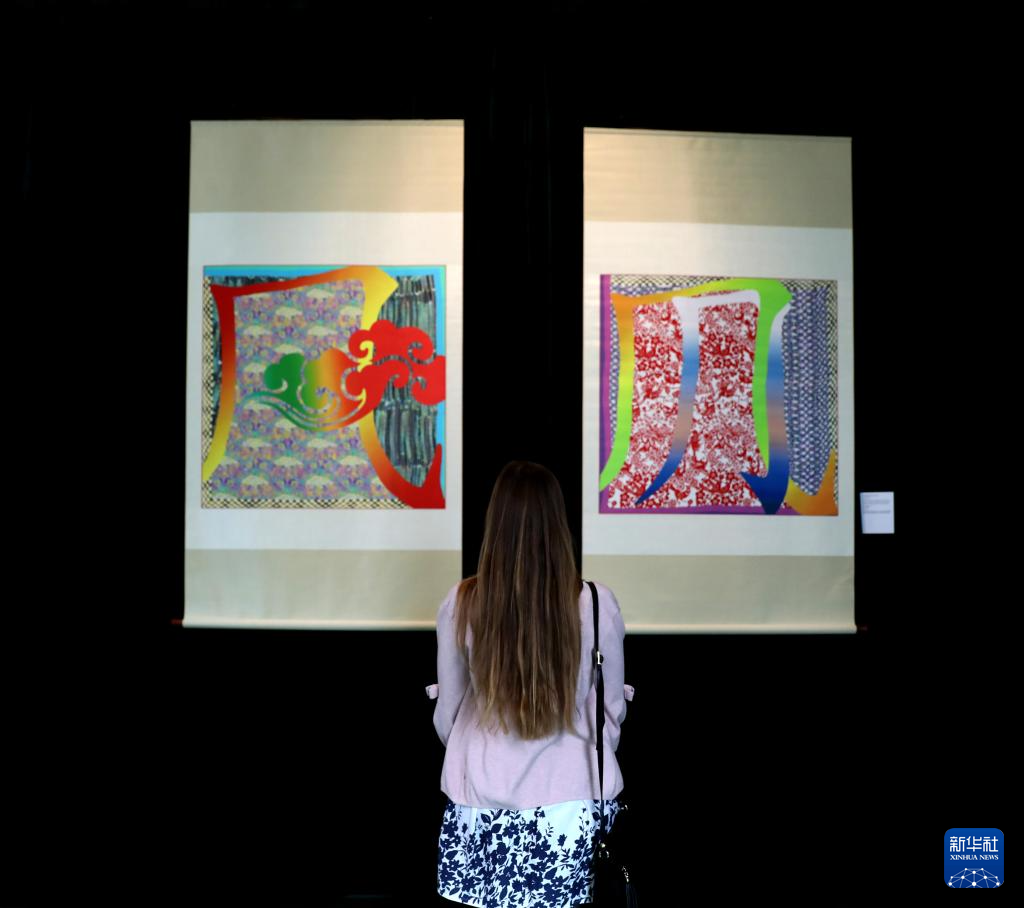 4月20日,在英国伦敦,一名女子参观“汉字演变”主题展览。