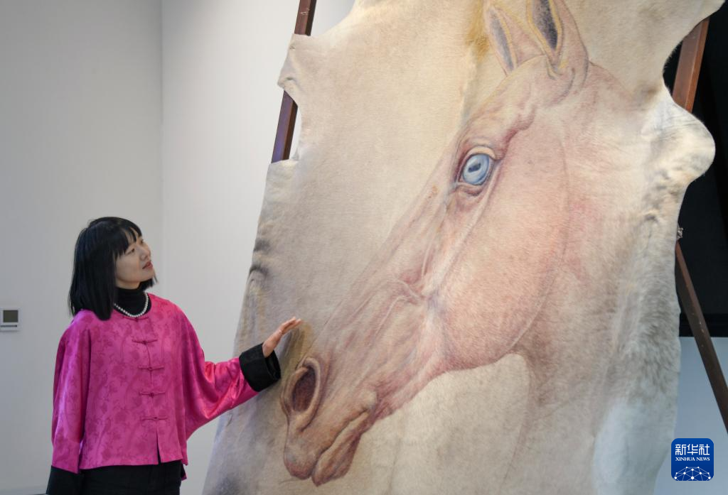 当日,国家艺术基金项目“毛皮画上的马文化”巡展乌鲁木齐站展览开幕,展出的120余件作品以纤维艺术毛皮画为创作载体,以古今中外马文化故事为创作题材,以马文化艺术发掘和保护为创作主线,呈现独具特色的纤维艺术与马文化魅力。