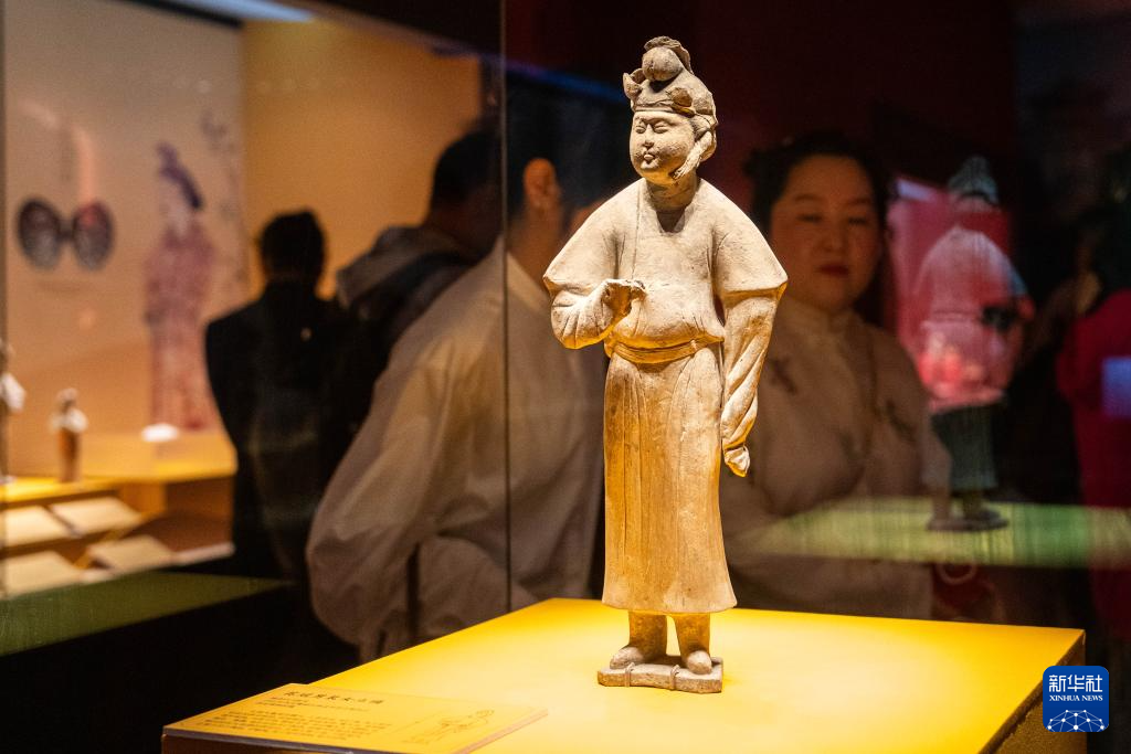 4月26日,在长沙博物馆,观众参观金乡县主墓出土的唐代文物“骑马击腰鼓女俑”。