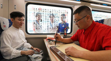 这是展出的一款龙泉宝剑作品局部(5月7日摄)。
