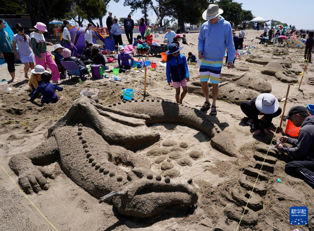 当日,美国加州旧金山湾区阿拉米达县举行沙雕比赛,吸引众多爱好者参与。