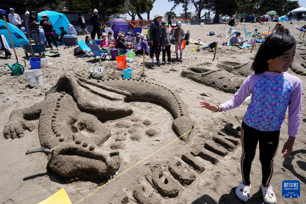 这是6月1日在美国加利福尼亚州阿拉米达县拍摄的沙雕作品。