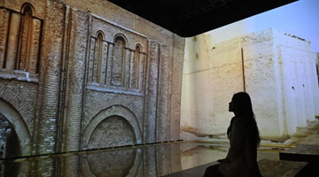 6月15日,游客在宁夏银川韩美林艺术馆参观。