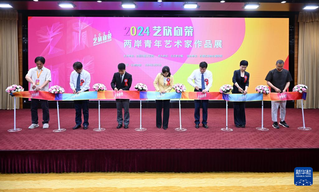 6月25日,嘉宾为“2024艺欣向荣——两岸青年艺术家作品展”剪彩。
