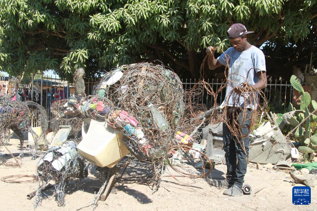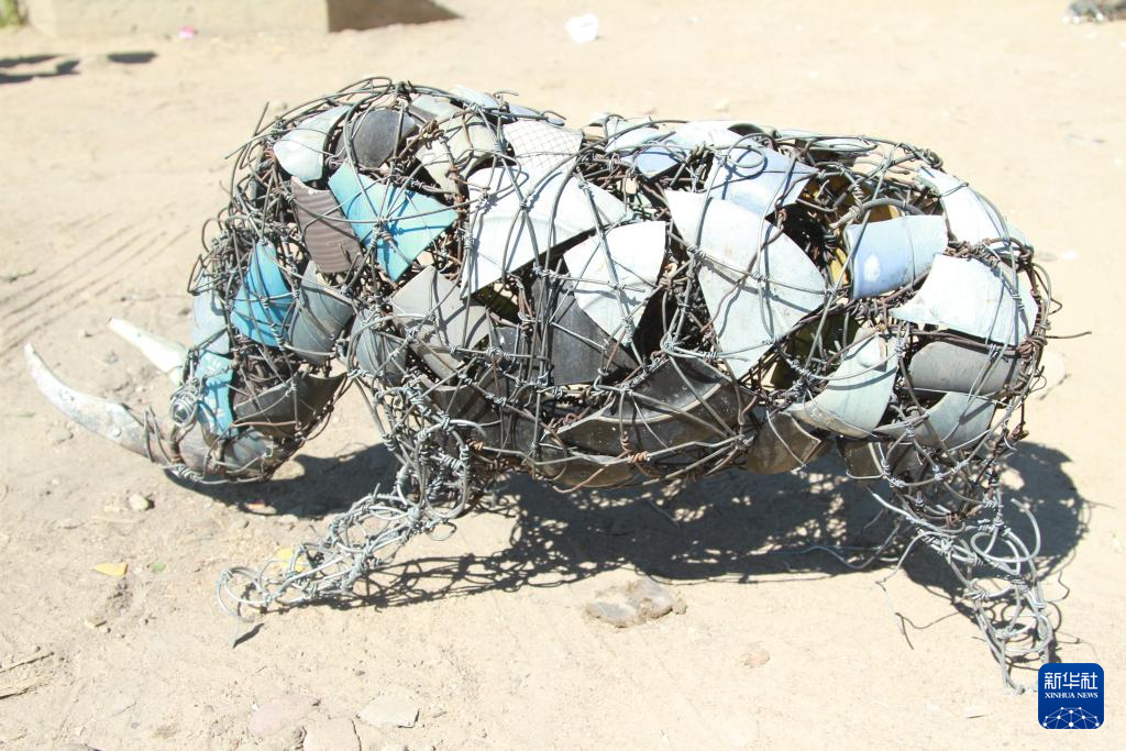 这是7月3日在位于津巴布韦哈拉雷省的一座小镇拍摄的约翰逊·祖泽制作的艺术品。