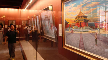 7月9日,观众在北京参观展出作品。