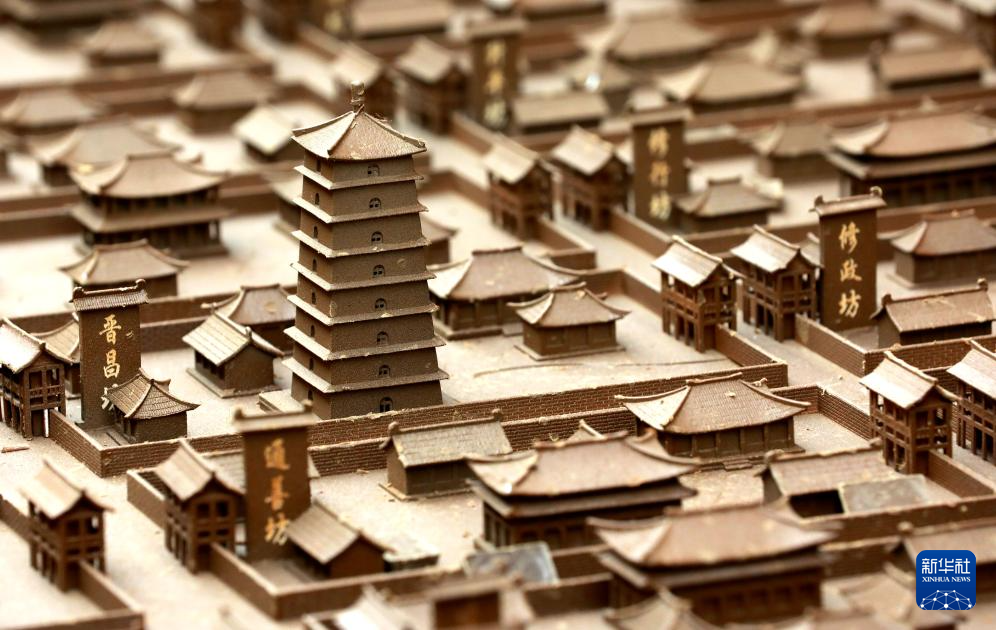 这是用巧克力制作的“长安舆图”沙盘局部(7月18日摄)。