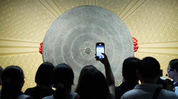 9月1日,游客在宁夏博物馆观赏石刻胡旋舞墓门。
