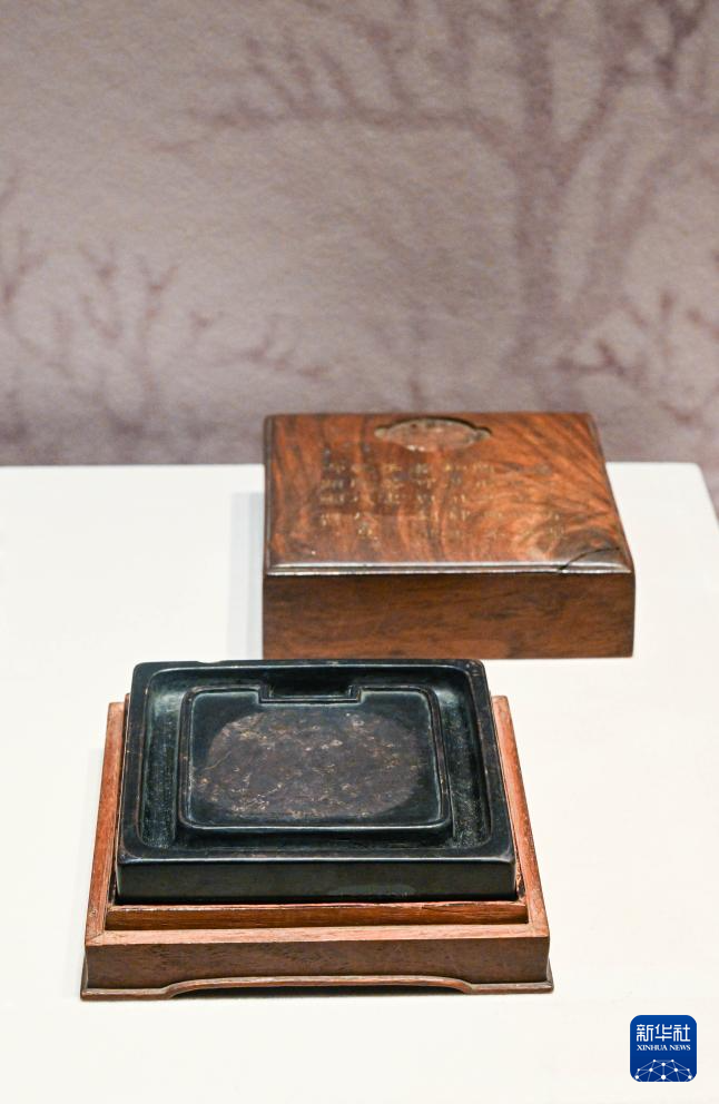 8月31日在海南省博物馆拍摄的“物华天宝 黎海琼珍——故宫博物院藏海南文物特展”展出的清代端石石渠方砚。