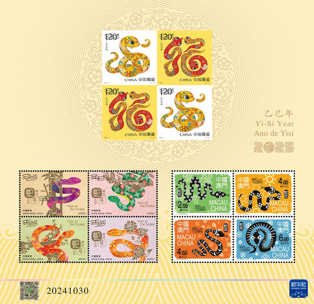 10月30日,中国邮政《乙巳年》特种邮票图稿发布仪式在北京举行。发布仪式上公布了《乙巳年》特种邮票即蛇年生肖邮票图稿并揭幕中国邮政携手港、澳邮政部门共同印制的《乙巳年》生肖同题材三地小全张。