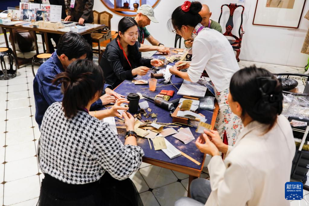 第七届中国国际进口博览会将于11月5日至10日在上海举行。在进博会新闻中心内,丰富多彩的文化活动吸引中外媒体记者观看、体验。