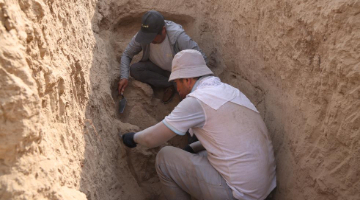 11月1日,在土耳其伊斯坦布尔,李昕桐(左)在老师埃罗尔的家中请教水拓画相关问题。