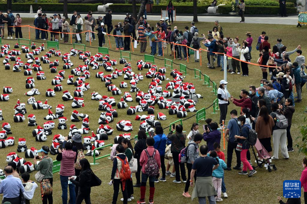 当日,香港中山纪念公园举行大熊猫雕塑主题展,2500只大熊猫雕塑吸引大批市民参观。