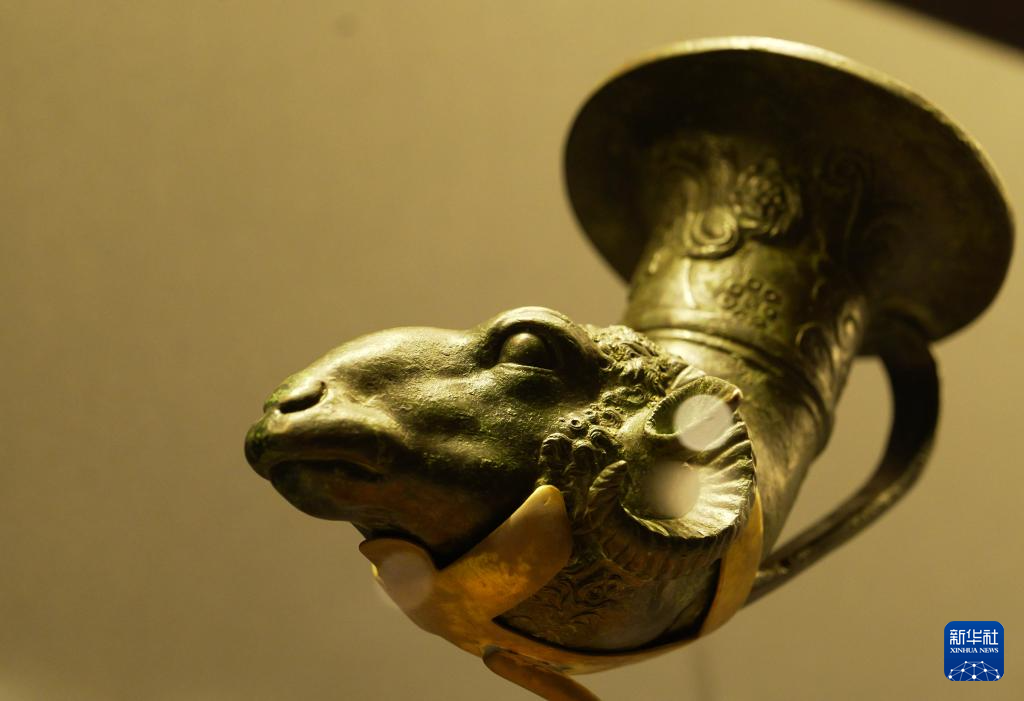 这是展出的羊首形来通(12月25日摄)。