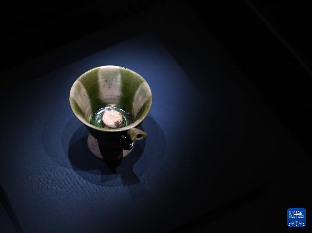 这是展出的唐代三彩吸管杯(12月27日摄)。