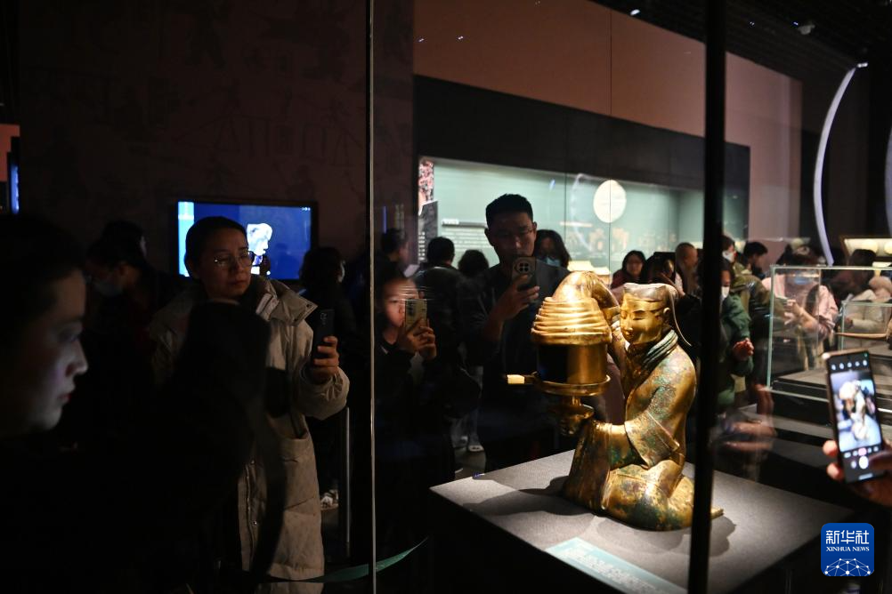 近日,在天津博物馆举行的“天开一统——秦汉文物主题展”上,包括长信宫灯在内的近400件(套)秦汉文物集中亮相,吸引观众前来参观。