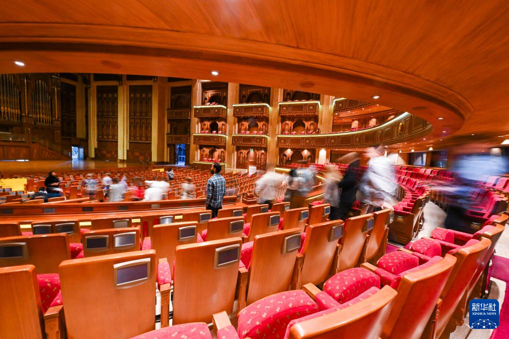 1月11日,游客在阿曼马斯喀特皇家歌剧院参观。