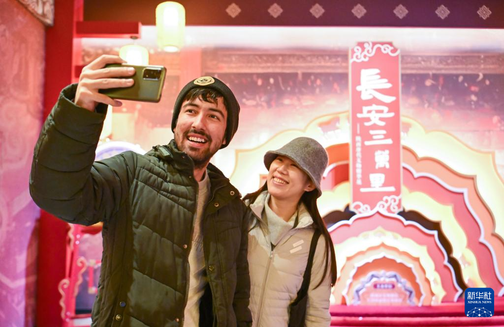 1月15日,观众在“长安三万里——陕西唐代文物精华展”上留影。