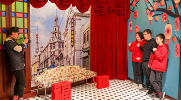 1月16日,小朋友在河北省群众艺术馆参观迎新春民俗文化展。