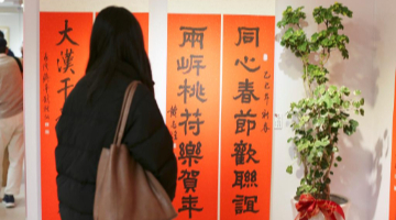 1月23日,当地市民在湖州吴兴的小西街朝阳里堂观赏年画作品。